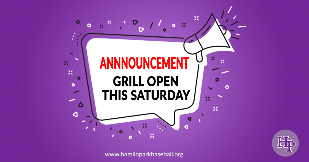 The Grill at Hamlin Park will be open this Saturday (Oct 25) from 10am to 4pm for our Hamlin Park Fall Ball Baseball playoffs.